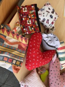 Jeder ist willkommen und kann helfen. Entweder zu den Nähtreffen gehen, zu Hause selbst nähen, Stoff oder Geld spenden!